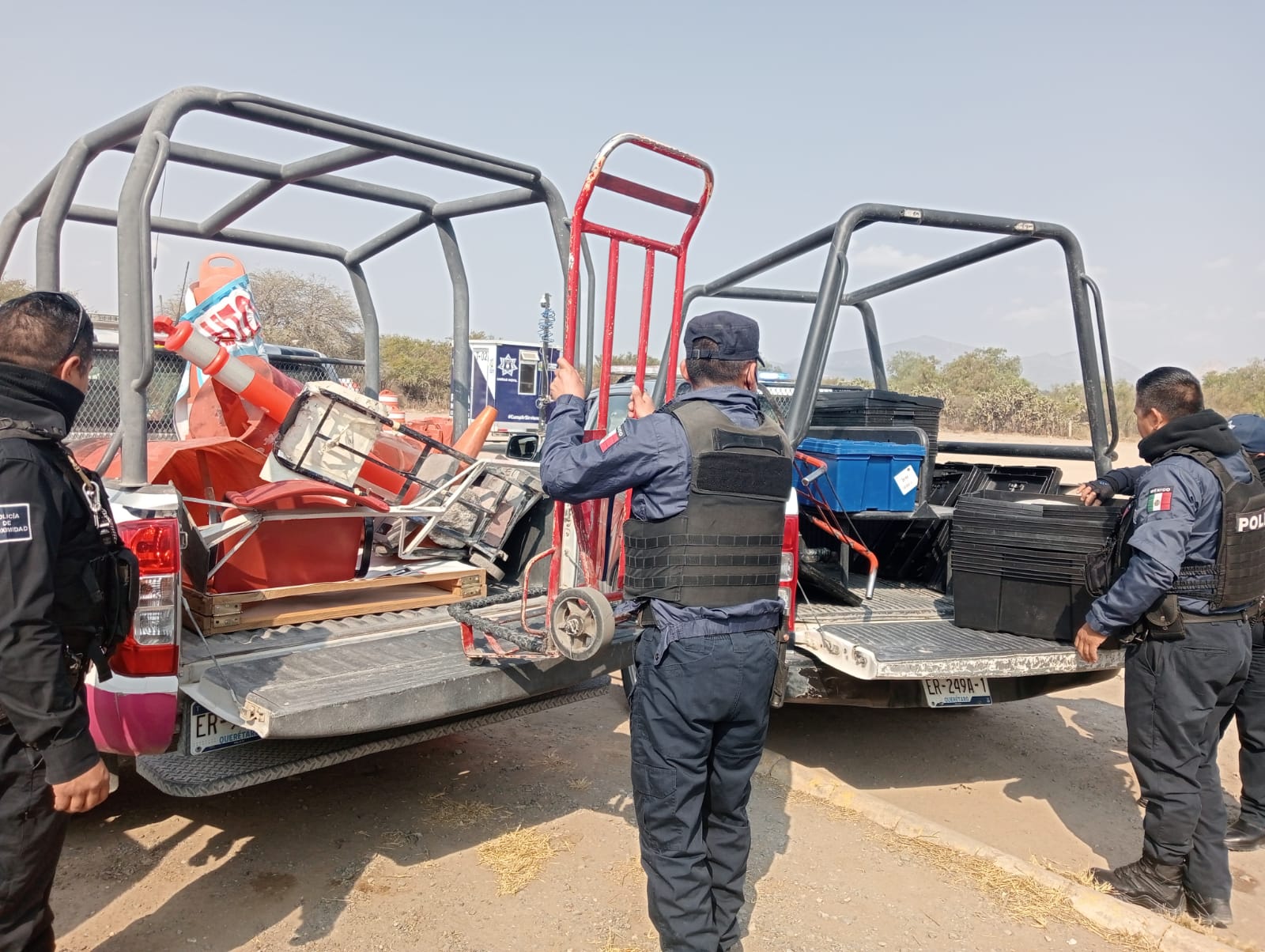 La Dirección de Seguridad Pública, Policía de Proximidad y Tránsito Municipal de Ezequiel Montes inicia operativo para evitar el apartado de estacionamientos en calles de la zona centro del municipio, asegurando durante la mañana de este jueves objetos que obstruían la vía pública.
